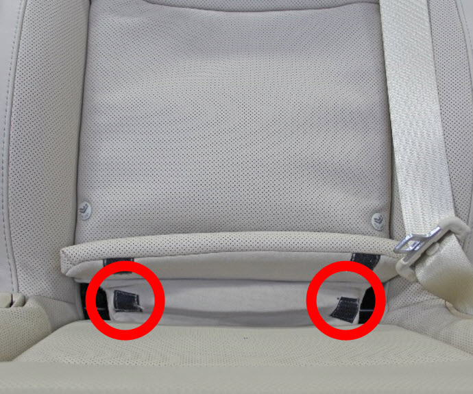 Gently lift the bottom corners of the 2nd row seat backrest cushion, then