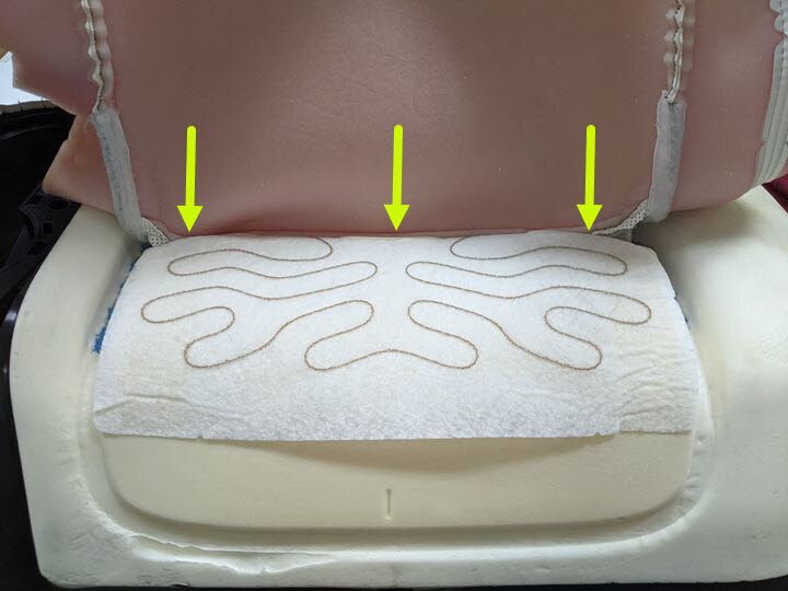 Install the new 3rd row seat cushion heat pad on the cushion foam.