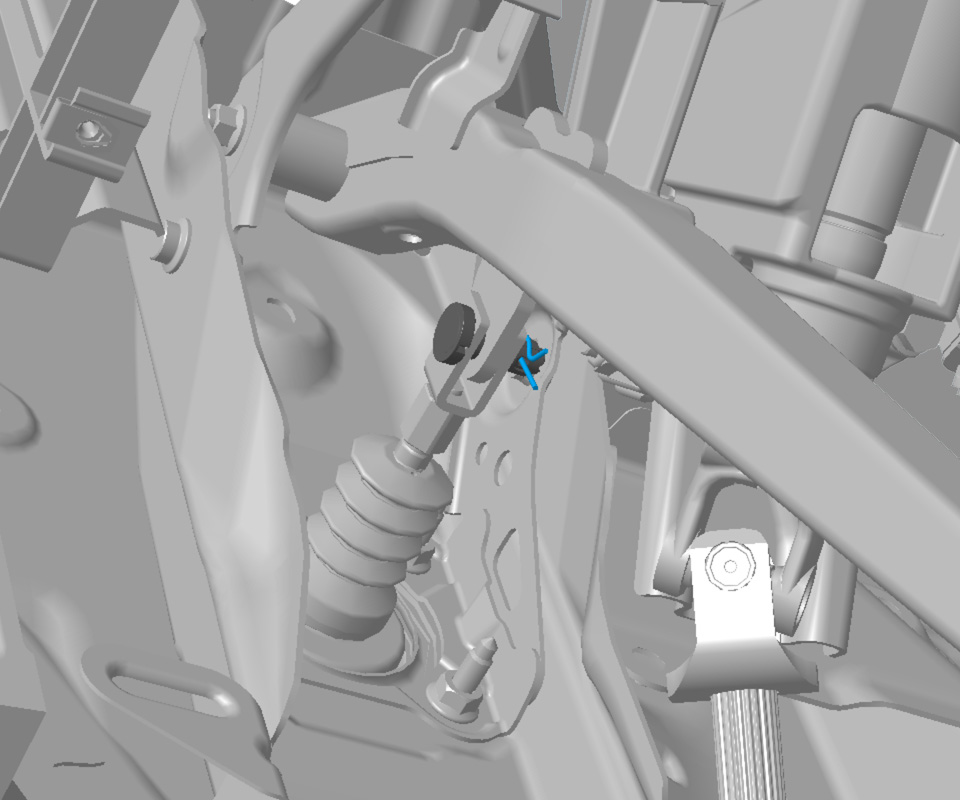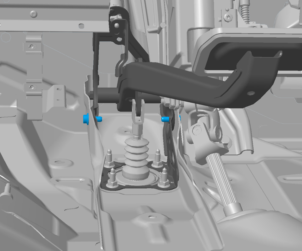 - Remove the bolts (x2) that secure the brake pedal assembly to the brake pedal reinforcement panel (torque 23 Nm).