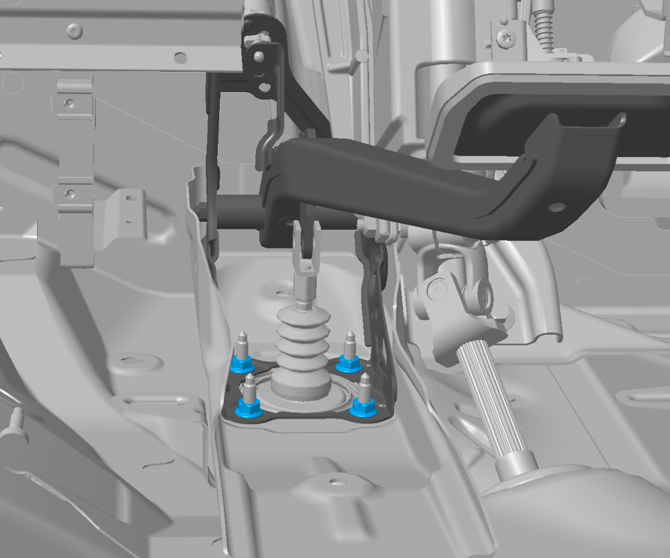 - Remove and discard the nuts (x4) that secure the brake pedal to the studs on the electromechanical brake booster (torque 23 Nm).