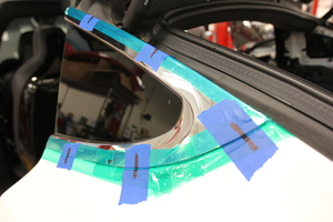 - Apply painter's tape to the body panel adjacent to the rear quarter window glass.