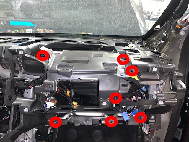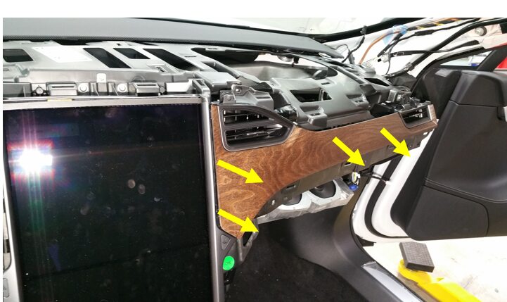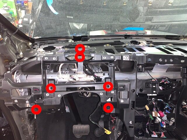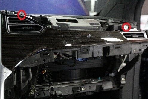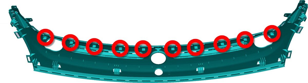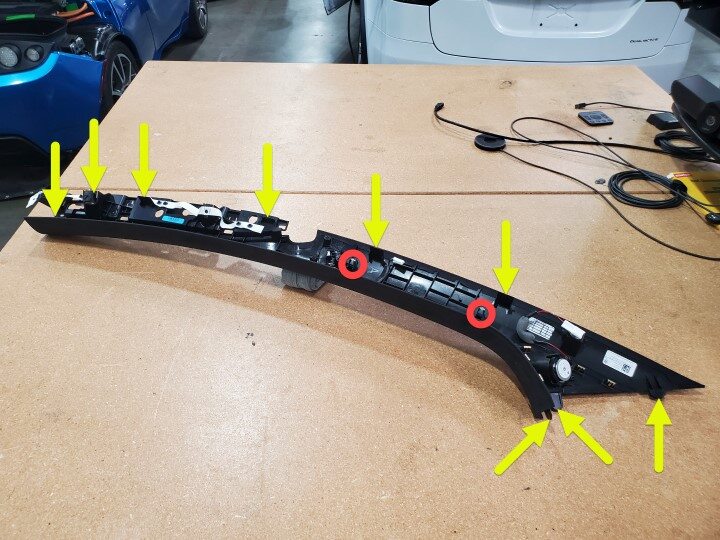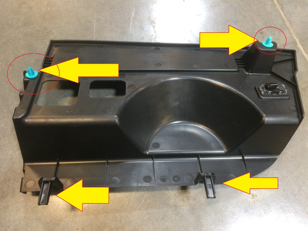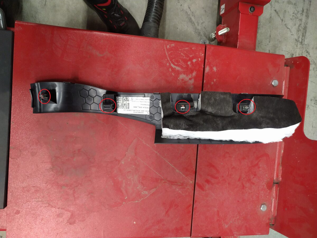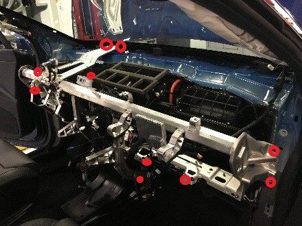 Note2x connectors, 2x datums, 7x tabs, 2x clips, Connect connectors then secure tabs downward onto IP sub assembly and lower trim, Secure rear of trim