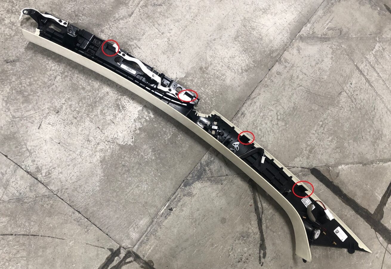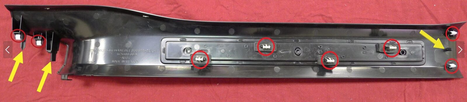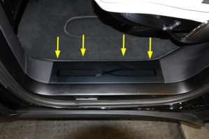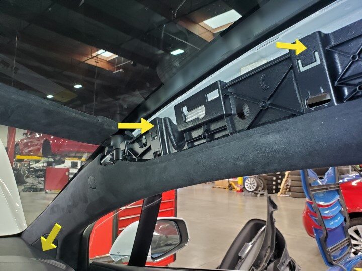 Note6x clips, 5x tabs, Insert tabs and slide bezel toward rear of vehicle then secure clips