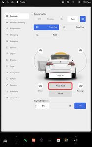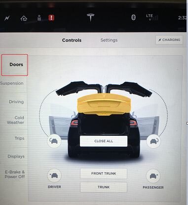 NoteUsing MCU touchscreen > Controls > Trunk , touchscreen > Controls > Front doors