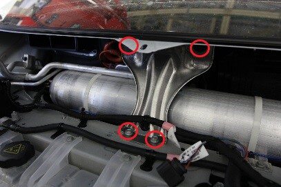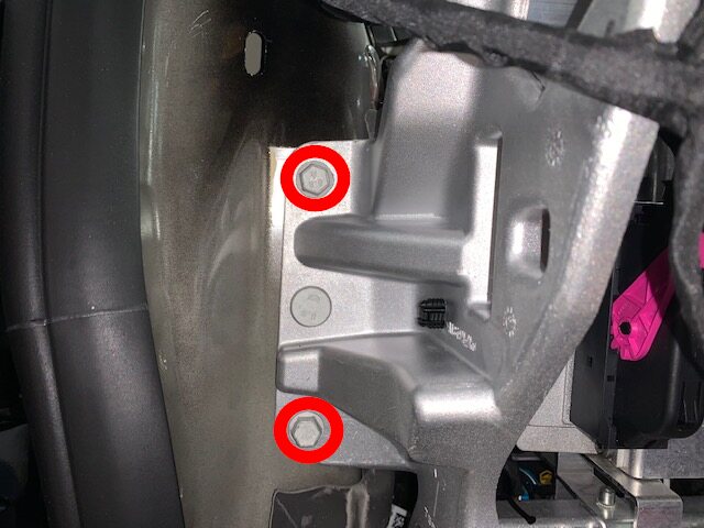 Note2x bolts, 10mm, 5 Nm, 1x screw, T20, 2.5 Nm, 1x nyloc nut, 13mm, 5 Nm, Install new nut