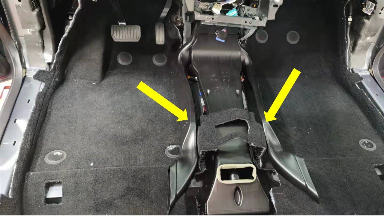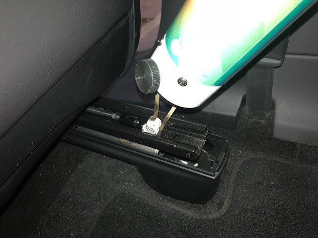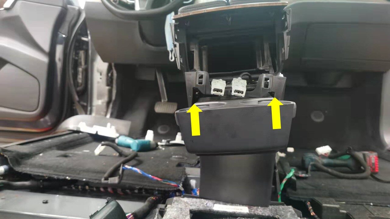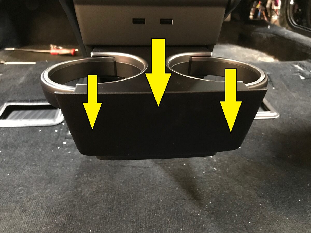 - Remove the front cup holder dividers, then remove the rubber mat at the base of the console