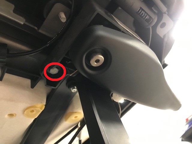 NoteSlide release handle assembly towards front of the seat to remove from seat frame
