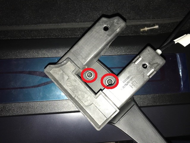 Note3x screws, T20, 0.5 Nm, Pivot handle fully outward to gain access to the third fastener