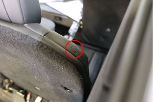 NotePress button located on LH 3rd row seat back assembly near headrest, lift seat back into an upright position