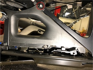 Remove front screw securing LH lower C-pillar