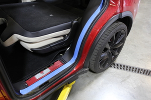 - Tape the LH lower C-pillar area around the 2nd row seat side trim area