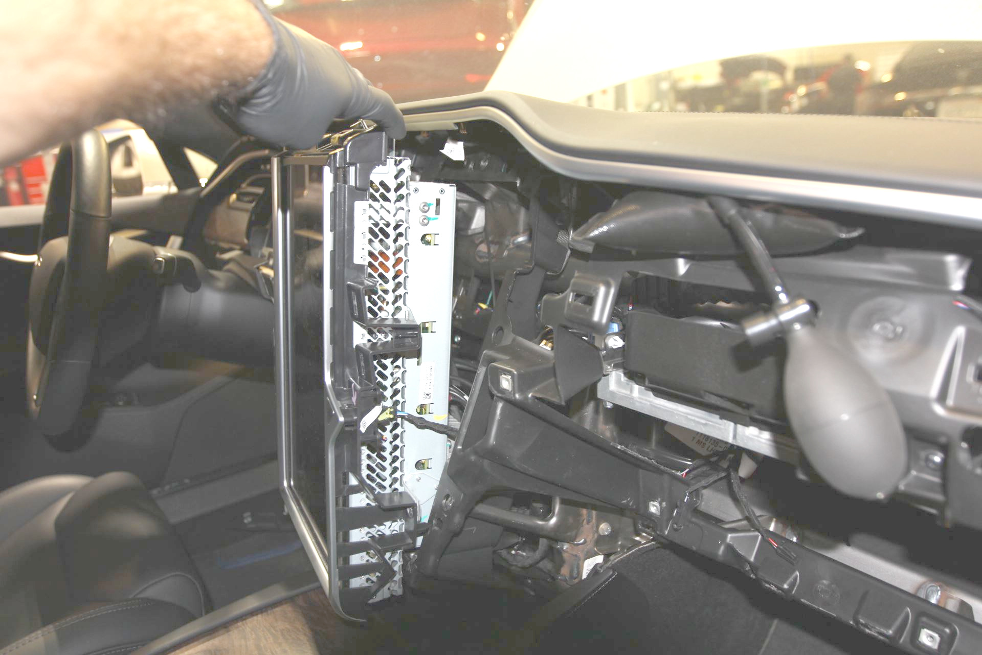 - Perform the procedure to remove the MCU from the instrument panel, but do not disconnect any cables or harnesses from the MCU (refer to procedure).