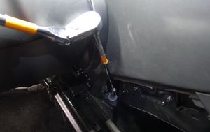 拆下用于将中控台左侧下部支架固定到仪表盘底座上的螺栓。