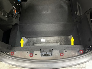 - 拆下后备箱负重底板。请参阅 后备箱负重底板 - 后部(拆卸和更换)。