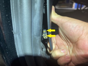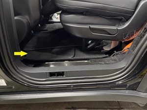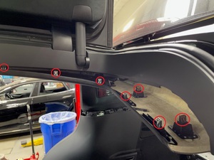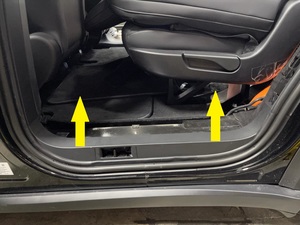 - 将左侧下部门框硬盖板饰板安装到车辆上,然后紧固用于将饰板固定到车辆上的卡子(8 个)。