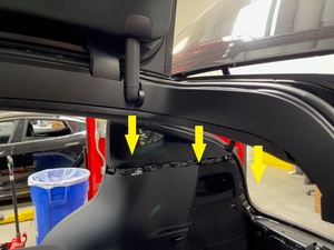 - 紧固用于将顶篷左后部后端固定到车辆上的卡子(7 个)。