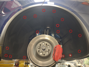 注1 个螺钉,T20,2 Nm,9 个卡子, 5 个锁片。