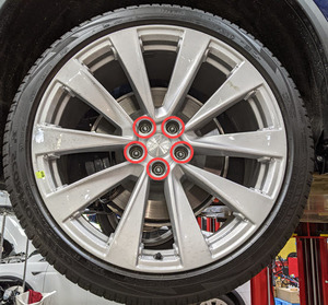 注5 个螺母,21 毫米,175 Nm;先手动拧上带耳螺母,然后再使用电动工具。