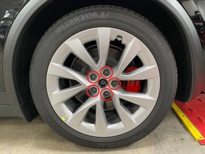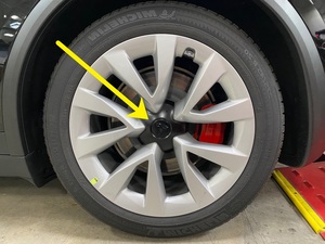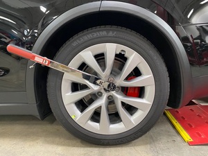 将轮毂千斤顶适配器安装到左后轮毂上。