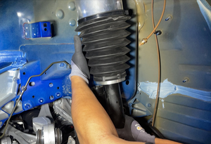 注建议请助手帮忙,将空气弹簧从车上取下,分离万向节。请小心操作,防止损坏任何部件。
