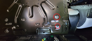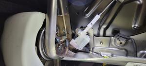 - 断开左侧第三排座椅连接器(2 个),然后穿过座椅罩下部重新布置连接器。