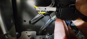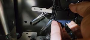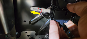 - 转动左侧第三排头枕传动装置,以便能够到头枕释放线缆,然后将线缆滑向传动装置底座。