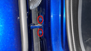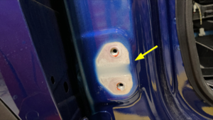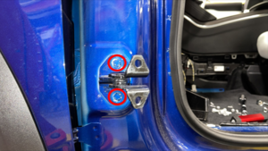 - 必要时,在左侧前车门下部铰链车身侧螺栓上涂抹修补漆。