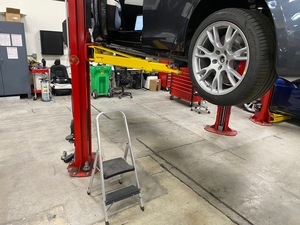 - 将车辆驶离双柱举升机。请参阅举升车辆 - 双柱举升机。