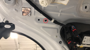 - 将左侧第二排后夹紧传感器安装到左后车门上,然后紧固用于将传感器固定到车门上的索环。