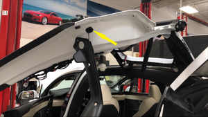 - 连接左侧鹰翼门安全气囊电气连接器,然后安装好橙色锁片。