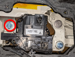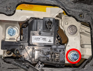 注仅适用于 2022 年 9 月 19 日之前生产的车辆 - 如果有云母胶带盖住螺栓,则取下并保留胶带以便进行安装。