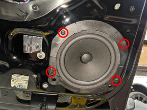 拆下将左后门扬声器连接到左后门的螺栓(4 个)并丢弃。