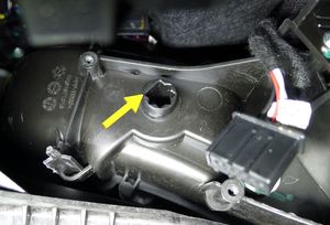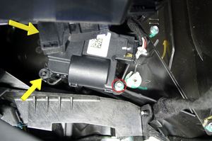 - 将右侧脚部空间风管执行器放到车辆中,然后连接电气连接器。