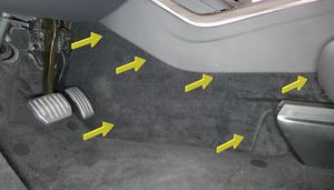拆卸中控台左侧地毯