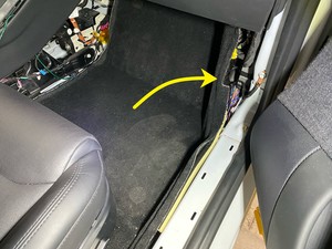 - 松开将电气线束连接到右侧脚踏板的夹子。