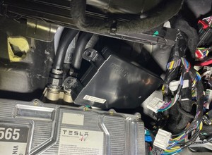 - HW4 车辆:HW4 车辆上的车载电脑冷却液软管阻碍操作空气悬架电子控制单元。拆下将车载电脑固定到车辆的紧固件 (x4),然后将车载电脑移到一旁,以操作空气悬架电子控制单元。请参阅GUID-77B776CB-0F26-44A3-B563-26B95D4D7F9C.html了解紧固件规格。