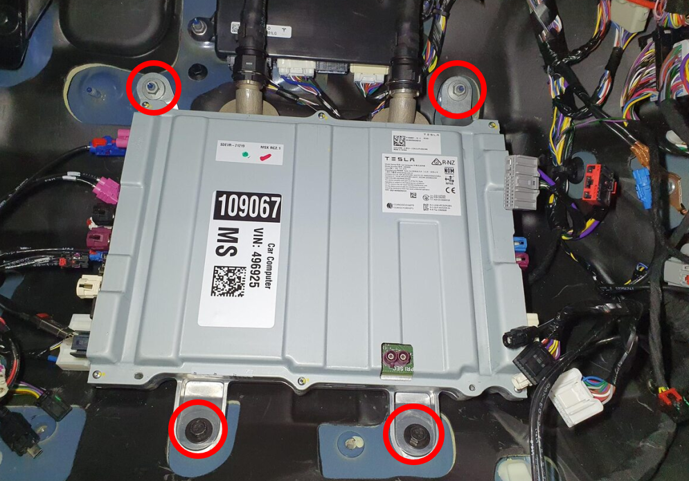 - HW4 车辆:将车载电脑放置到车内,然后安装将车载电脑固定到车辆的紧固件 (x4)。请参阅GUID-77B776CB-0F26-44A3-B563-26B95D4D7F9C.html了解紧固件规格。