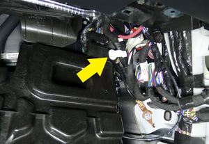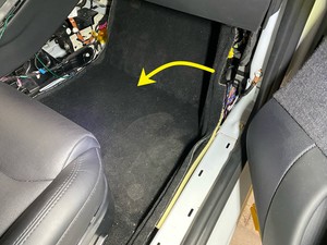 - 放置将电气线束连接到右侧脚踏板的夹子。