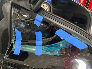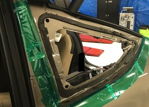 - 在左后围玻璃周围的车身区域粘贴胶带。