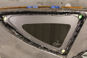 切割聚氨酯,然后将左后围玻璃从车辆上拆下。
