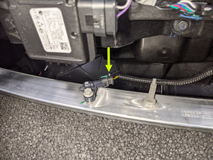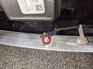 - 松开锁片,然后断开左前保险杠碰撞加速度传感器连接器。