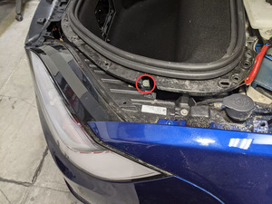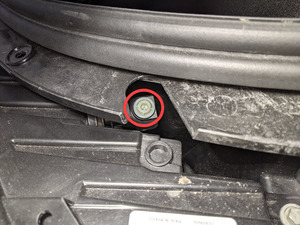 拆下前备箱左侧挡板。