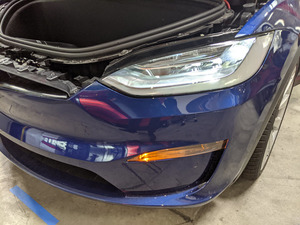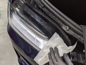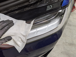 - 将翼子板保护套从右侧前照灯上拆下,然后用其遮盖左侧前照灯。