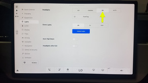 注操作如下:center display > Controls > Lights > Headlights。