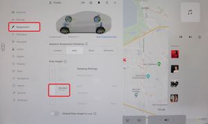 注操作如下:center display > Controls > Suspension > Standard,确保轮胎压力设置符合规格,以确保行驶高度的准确性。