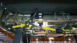 - 将黑色连接器(2 个)固定到左侧第二排座椅框架上,然后连接电气连接器(4 个)。