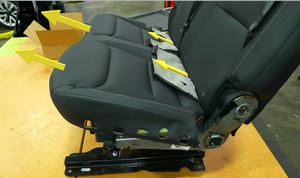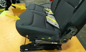 将第二排中间安全带锁扣安装到座椅总成上,然后安装一个新螺栓,将锁扣固定到座椅总成上。