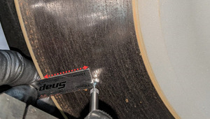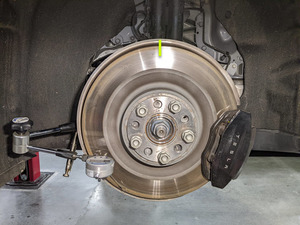 - 标记后制动盘的顶部中心以确定起点。