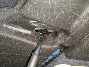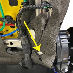 注通过检修口将线束送至驾驶位座椅靠背泡沫。