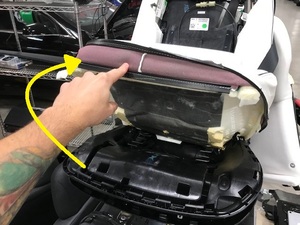 - 将下部坐垫罩放置在远离座椅骨架底部的位置。